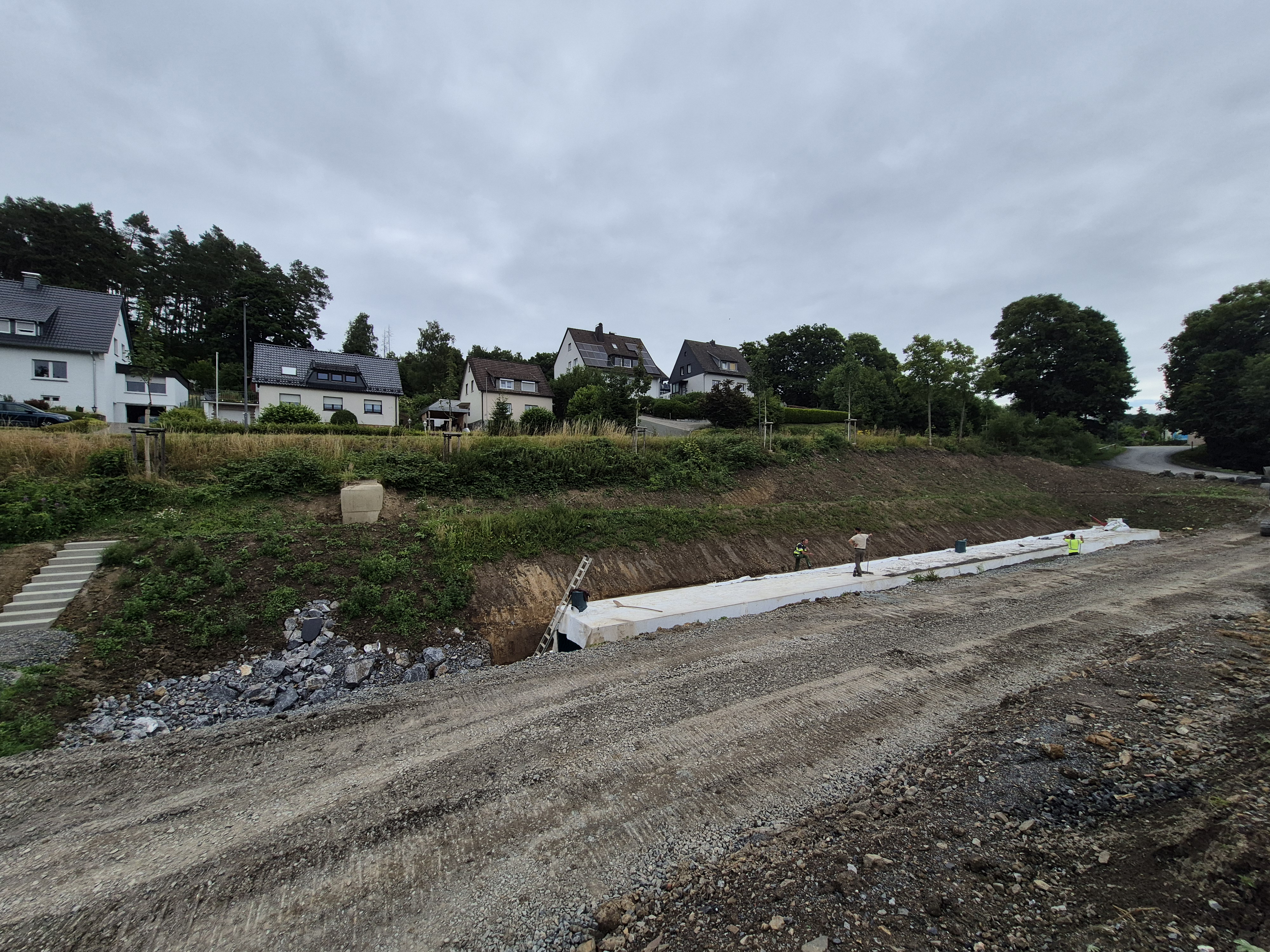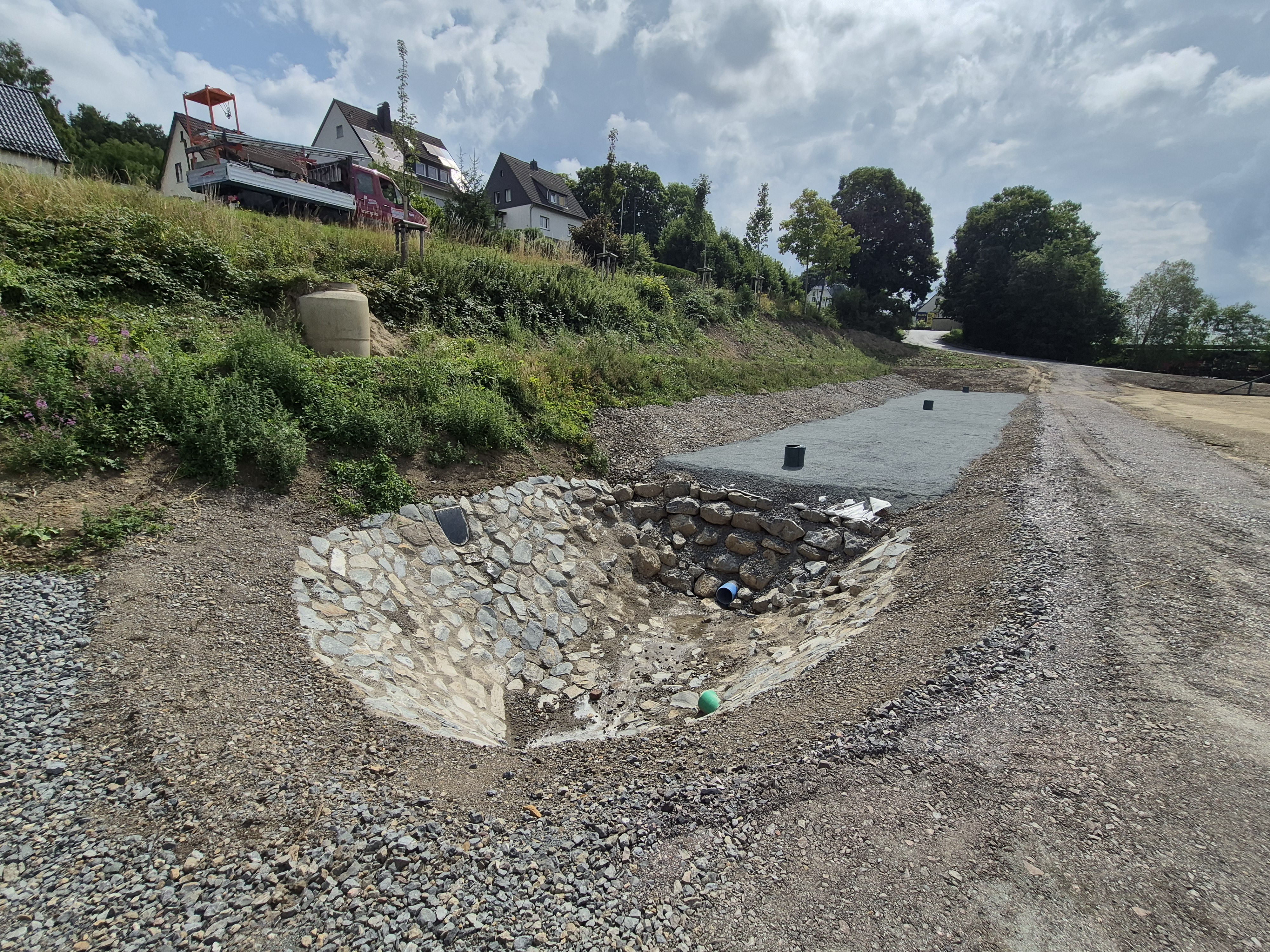 Behandlung + Versickerung der Regenwasserabläufe eines 9.000 qm Baugebiets in extremer Hanglage